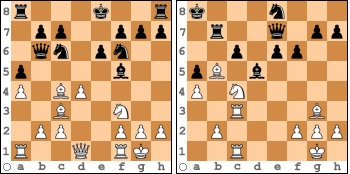 Den Grundstein zum Sieg legte er in einer spektakulären Opferpartie gegen seinen Kollegen Leonid Milov. In der linken Diagrammstellung, die Milov mit Schwarz zuversichtlich und zügig aufs Brett gestellt hatte, versank der Niederländer lange ins Nachdenken und opferte dann die Dame auf Position: 12. d5?! 0-0-0 13. dxc6 Txd1 14. cxb7+ Kxb7 15. Tfxd1.