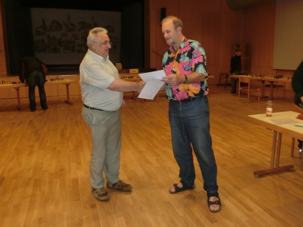 Turniersimultan 2013: Hellmuth Lebermann hatte keiner so recht auf der Rechnung! Und so ziemlich jeder konnte hinterher ein Lied davon singen, wie dumm er gegen Hellmuth Lebermann verloren hatte. Und erst beim Addieren der Punkte stellte sich das Ergebnis wirklich heraus, weil die Tabelle sehr lange ziemlich schief hing.
