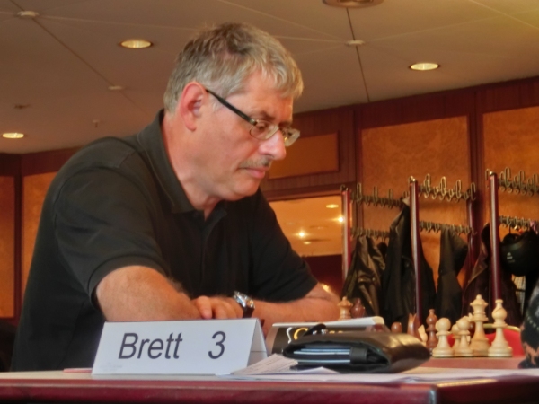 Mit 3½ sicheren Punkten konnte Jonas Lenz seine Partie Remis geben und den ersten Mannschaftspunkt sichern. Gleichzeitig hatte Manfred Kühlmeyer seinen Gegener bei fast vollem Brett seit längerer Zeit in einer Druckstellung. Die Komplexität der Stellung und die sich verstärkende Zeitnot waren schlussendlich die Ursache dafür, dass der Gegner mit Materialnachteil kurz vor der Zeitüberschreitung aufgab.