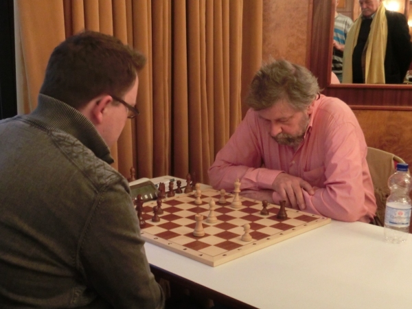 Ingo Hanemann (hinten) kurz vor seinem Sieg: Er hat jetzt 4 Punkte aus ebensovielen Partien und ist damit einer der Top-Scorer der Hessenliga.