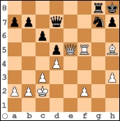 Ralf Dunsbach - obwohl schon relativer Spezialist in der Grünfeld-Verteidigung - wusste und fand das nicht. Nach 13. ... Se4 14. d7 Te7 15. Sxe4 Txe4 16. Lg5 Lf6 17. Lxf6 Dxf6 18. Dc3! entstand die zweite Diagrammstellung, in der die Lage schon sehr schwierig ist. Schwarz entschied sich schweren Herzens für 18. ... Dxc3(!) 19. d8=D+, verlor aber die Qualität und später die Partie.