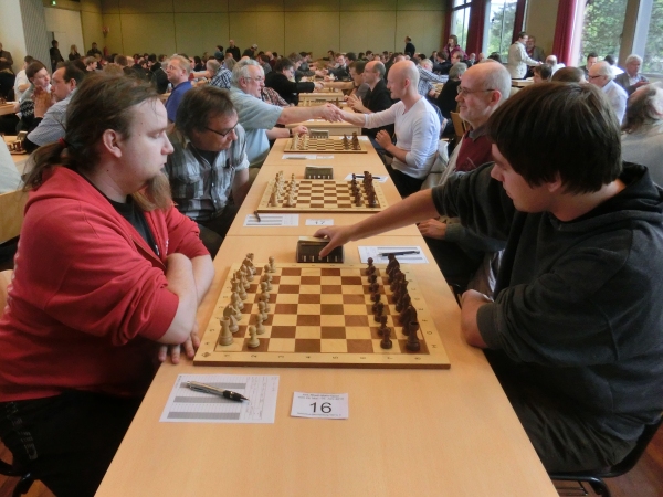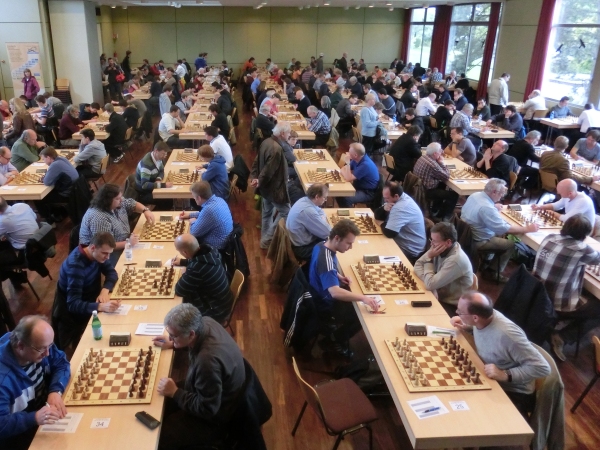 Volles Bürgerhaus Kirdorf: 225 Schachspieler spielen zwei Gruppensieger aus.