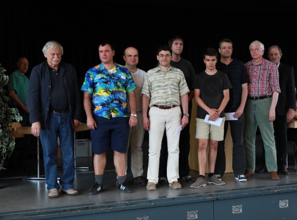 Die Sieger des A-Turniers: In der Mitte GM Leonid Milov, der nur 2 Remisen abgab!