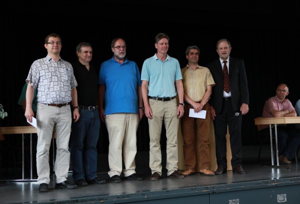 Die Sieger des B-Opens: In der Mitte Stephan Euler, der eigenen Angaben gemäß nach ganz langer Pause erst sein zweites Schachturnier bestritt.