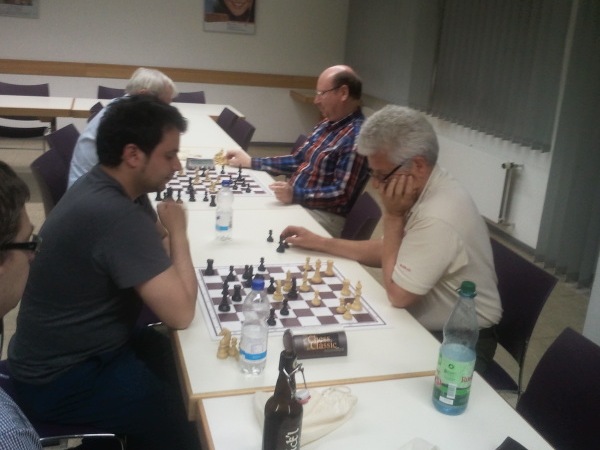 Hier fiel die Entscheidung: Richard Kaiser (rechts) setzte sich mit seinem Sieg in der virtuell letzten Partie des Turniers an die Spitze.