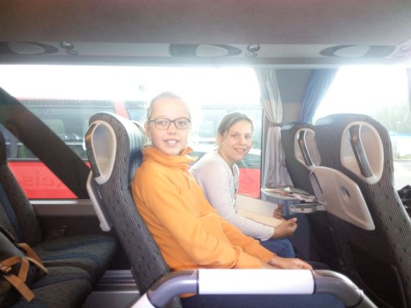 Auf der Fahrt lernten wir gleich auch die anderen Sportler kennen. Die übrigen Schachspieler saßen allerdings alle weiter hinten. Wir fuhren guter Dinge los und winkten fröhlich den Eltern.