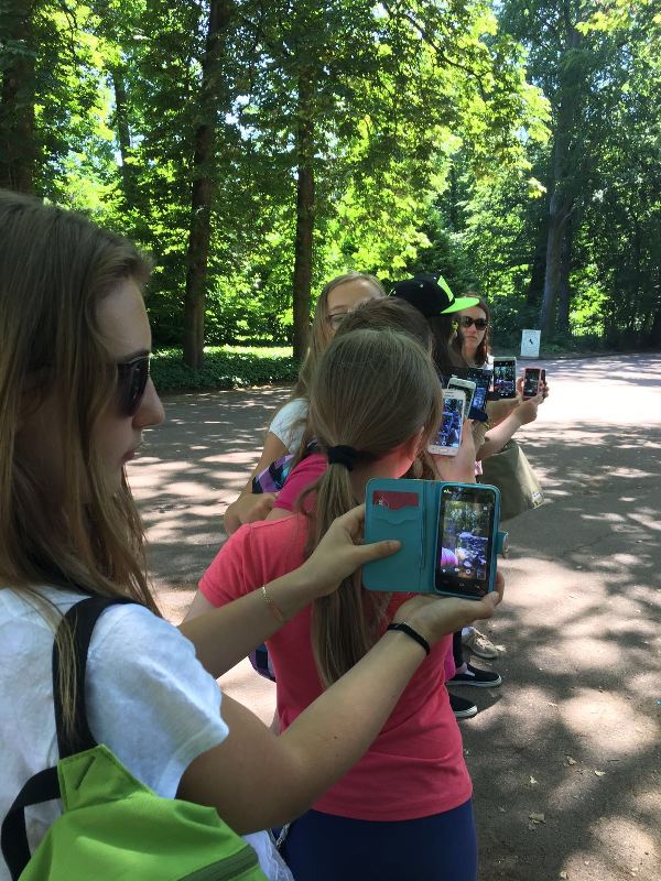 Kultur: hier die "Basilique de Fourvière". Wofür sich Teens begeistern können, wenn keine Eltern dabei sind... - Mein Lieblingstag war unser Shoppingtag, weil wir nach dem erfolglosen shoppen an einen Teich gingen und uns dort prima entspannen konnten während wir „Lügen“ gespielt haben. Das ist ein Kartenspiel in dem reihum verdeckt Karte ausgespielt werden und man aufpassen muss wann der Sitznachbar dabei lügt, dabei kommt in so großen Gruppen wie unserer richtig gute Stimmung auf.
