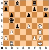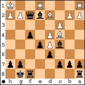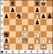 In der Diagrammstellung erhöhte sie konsequent mit 17. … f3 den Druck gegen den weißen König und nach 18. gxf3 gab es ein eher seltenes Läufermatt mit Lxf3#.
