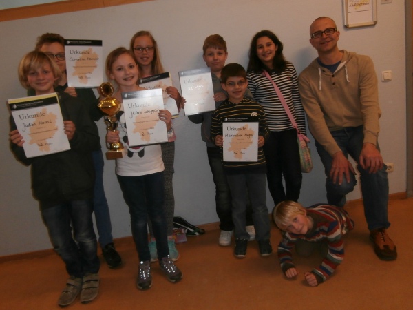 Damit kam Jan auf starke 4½ Punkte. Cornelius und Julian erkämpften sich beide noch ein Remis und kamen jeweils auf tolle 3½ Punkte. Sarah, Fenja und Max konnte ihren bisher zufriedenstellenden Turnierergebnissen zwar kein weiteres Erfolgserlebnis mehr hinzufügen und blieben somit bei ihren bisherigen 4, 3½ und 3 Punkten, aber da sie ja alle auch nächstes Jahr nochmal in der U12 spielen können, Julian übrigens auch und Max sogar noch 3 Jahre, waren alle mit ihren Ergebnissen zufrieden und freuen sich schon auf nächstes Jahr.