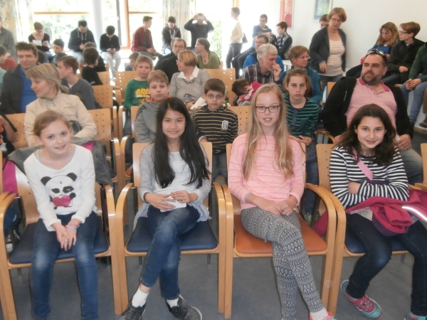 Beste Plätze vor der Siegerehrung (vlnr): Jelena, Joey (Gernsheim), Fenja und Sarah. Hintere Reihe: Maximilian und Jan