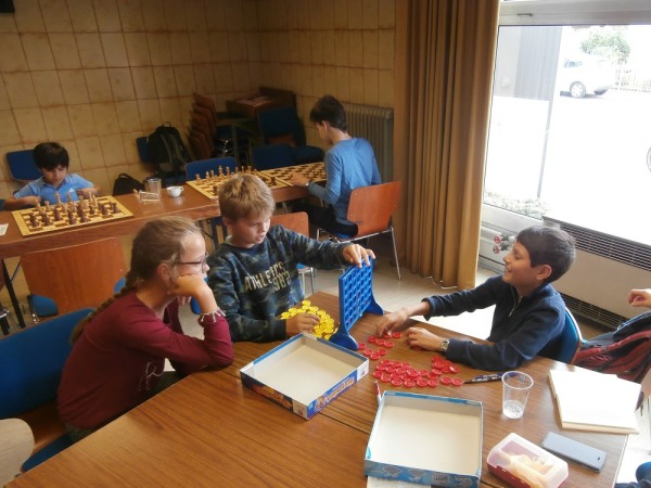 Nebenan gab es einen großen Mehrzweckraum mit ausreichend vielen Analysebrettern, einigen anderen Spielen, Büchern und freien Snacks und Getränken für die Kinder, besser geht es wirklich nicht!