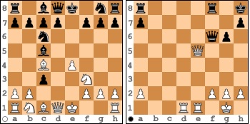 Als sie dann in der rechten Diagrammstellung jedoch keine konkrete Gewinnfortsetzung mehr entdecken konnte, begnügte sie sich lieber mit einem Remis und freute sich diebisch über den halben Punkt gegen einen so hoch eingestuften Gegner in einer Turnierpartie.