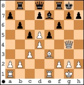In der 4. Runde wartete Nicolas in der Eröffnung geduldig ab bis sein Gegner in der Diagrammstellung endlich 8. ... d6 gezogen hatte, bevor er mit Sd5 zum letztlich spielentscheidenden Angriff ansetzte.