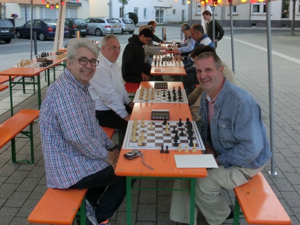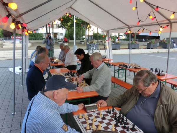 Es war ein Experiment. Und dann kam noch der Brückentag sowie das Weinfest in Bad Homburg dazwischen. Aber dennoch fanden sich bei kühlem aber schönem Wetter 10 Schachspieler auf dem Gunzo-Platz in Bad Homburg ein, um das Mai-Blitzturnier auszutragen.