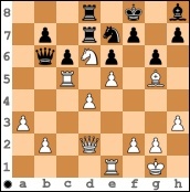Ganz ohne Schrecksekunde ging es freilich nicht ab. Zwar kam der anziehende Isserman mit großem Vorteil aus der Eröffnung, aber dann wurde er leichtsinnig. Die Diagrammstellung sieht leicht gewonnen aus, so dachte sich das auch das Bad Homburger Spitzenbrett, als er zuletzt 20. Tc5 gezogen hatte. Aber es folgte der Gegenschlag 20. ... Lxe5.