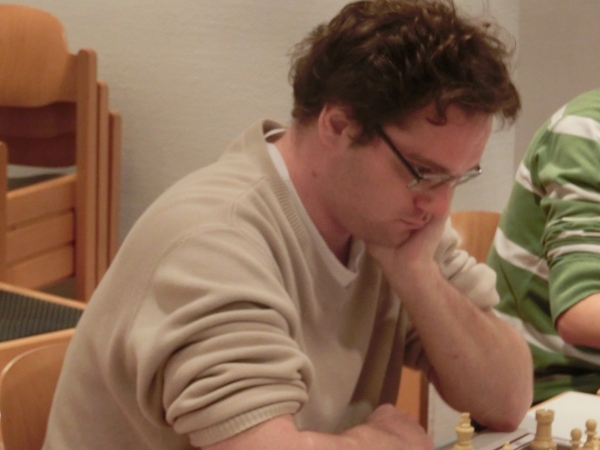 Ralf Dunsbach kam unverschuldet einige Minuten zu spät, aber es war sein Gegner, der - offenbar von Dunsbachs Sd4-Spanier überrascht - schon nach 4 Zügen eine Stunde Bedenkzeit auf der Uhr hatte. Aber am Ende war nichts zu machen: Remis noch vor der Zeitkontrolle.