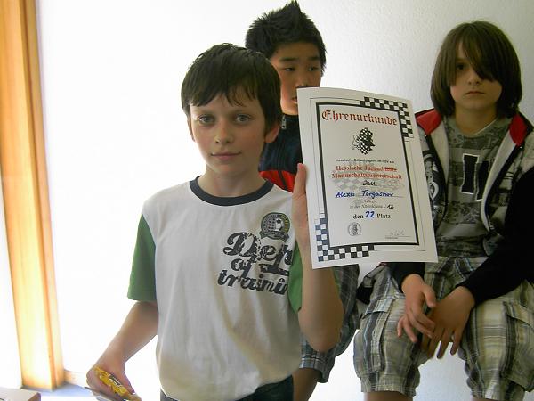 Auch die Erfolge der anderen Bad Homburger Schüler können sich sehen lassen: Alexei Torgashov holte 5 Punkte und landete auf Platz 22. Lennard Gleumes und Tommy Ma liefen zwar im hinteren Mittelfeld ein, aber die U12-Gruppe der Hessischen Meisterschaft (!) ist ja auch nicht von Pappe. Im nächsten Jahr kann es da schon wieder besser laufen.