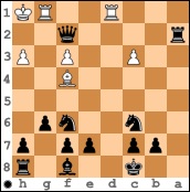 In der abendlichen 4. Runde verpasste Alexej mit Schwarz in der Diagrammstellung erst noch einen möglichen Damengewinn mittels 5. ... Lxf2+. Doch nicht viel später ergab sich eine weitere hübsche Taktik für ihn. Nachdem Weiß in der zweiten Diagrammstellung 16. Lxc6 spielte, bereitete er seine Idee ganz ruhig mittels 16. ... Td6 17. Lg2 Tfd8 vor.