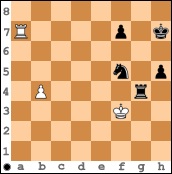 Nachdem Alexej am Vorabend in der Auftaktrunde seinem überzeugend auftretendem Gegner etwas unglücklich ein Patt zugestanden hatte, das eigentlich noch gar kein Patt war, kam Caissa, die Göttin des Schachs, diesmal auf seine Seite. In der Diagrammstellung hatte er mit Weiß zwar deutlichen Materialnachteil, doch sein Gegner wollte gerne noch einen seiner Freibauern umwandeln und zog 1. ... h4. Da ließ sich Alexej nicht zweimal bitten und nahm den Turm auf g4 gerne mit. Nach 2. ... Kh6 3. Kxf5 h3 4. Ta2 Kh5 5. b5 Kh4 und dem technisch souveränen 6. Kf4 gab sich sein Gegner geschlagen und einen Zug später ging auch dieser volle Punkt an Alexej.
