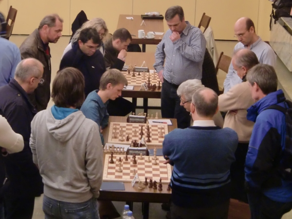 Dann die Wende: Mannschaftsführer Dirk Schneider profitierte von einem bösen Rechenfehler seines Gegenübers und kassierte eine siegbringende Mehrfigur.