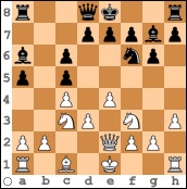 Schnell war klar, dass die Bad Homburger ihre berechtigten Abstiegssorgen an diesem Tag ohne Mühe loswerden würden: Ingo Hanemann erwischte seinen Gegner auf dem falschen Fuß und stand nach 10. e5 Sg8 11. Se4 praktisch schon auf Gewinn, da c5 nicht gut zu decken ist. Es folgte bald ein erzwungenes Figurenopfer des Gegners und ein leichter Mattangriff auf der dann schon offenen g-Linie.