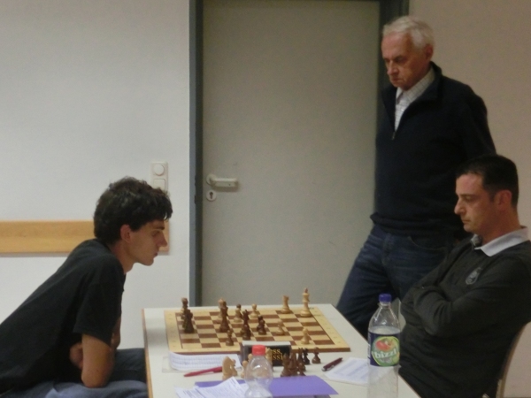 Schließlich endete auch die Partie am Spitzenbrett zwischen zwei ernsthaften und etwa gleichstarken Gegnern nach einer vierstündigen Gesamtspielzeit nach einem starken Angriff des Weißen mit einer Damenopferdrohung in der Schlussphase durch einen überaus aufmerksamen schwarzen Gegenspieler, dessen König lieber noch einen Bauer aufgab und noch rechtzeitig floh und so noch sowohl dem drohenden Matt entging und darüber hinaus den Partieschluss gar noch umkehrte. Gratulation an dieser Stelle für Robert Neubauer für diesen noch grandiosen Brett-Sieg.