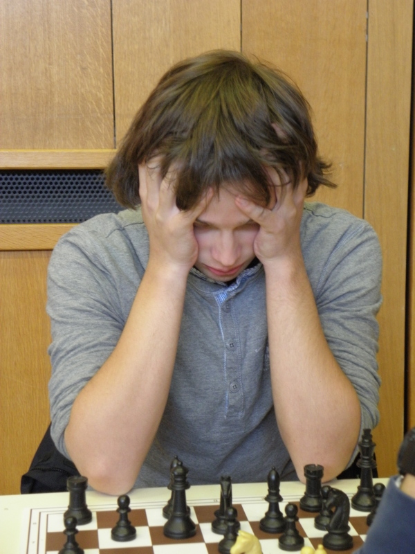 Nicht das schönste Bild. Aber Schach ist auch (positiver!) Stress: Jonas Lenz bei der Arbeit.