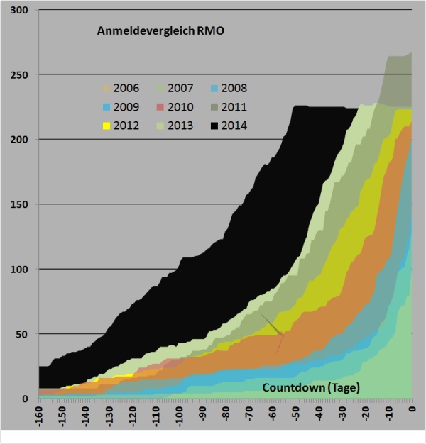 Der Anmeldeverlauf im Zeitablauf und Vergleich: So rasch wie dieses Mal waren die Plätze noch nie ausverkauft! Auch ein Satz, der sich jährlich wiederholt.
