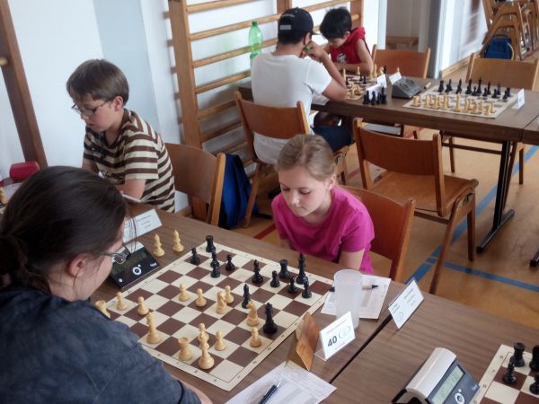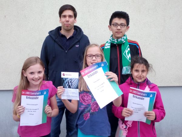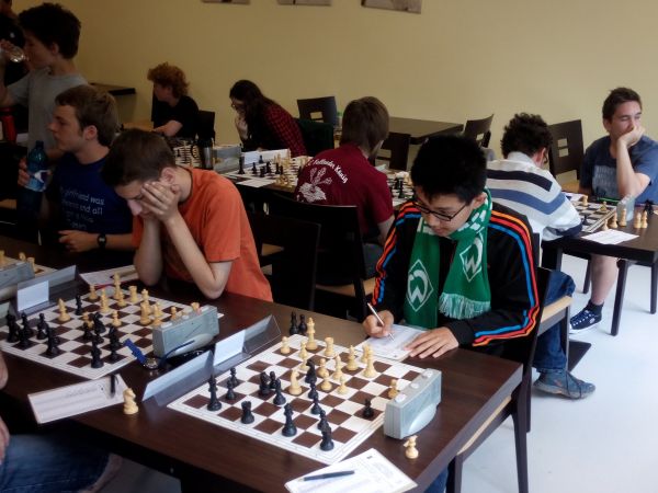An diesem Wochenende nahmen Jelena, Sarah, Fenja, Marco und Tommy an der 13. Auflage des Pfingst Jugend-Open in Gernsheim teil. Die fast 200 Teilnehmer (!) haben sich bei 7 Runden mit 2x 90 Minuten Bedenkzeit in 2 Gruppen gemessen. Das A-Open war traditionell für alle Spieler zugänglich, wohingegen das B-Open eine DWZ-Begrenzung bei 1300 vorsah. Die 3 Mädels haben sich so dann auch in der B-Gruppe um neue Erfahrungen bemüht und haben auch alle ein schönes Turnier gespielt.