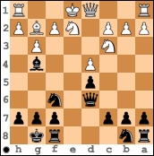 Nach 12. ... Lxe3 13.Dxe3 d4 14.Dh3 dxc3 war eine Mehrfigur zu verzeichnen, und die Partie ging schon in die Verwertungsphase. Einen wunderschönen Schlußpunkt setzte er am Ende in der rechten Diagrammstellung mit dem lehrbuchreifen 23. ... Se3!.