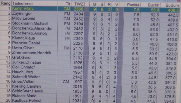 Am Gastgeber lag es jedenfalls nicht: Gute Spielbedingungen und Bewirtung sorgten für eine gute und ruhige Turnieratmosphäre. Das Turnier gewann übrigens GM Vitaly Kunin vor Schnellschachspezialist Igor Zuyev.