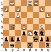 Er zog 30. a5 Sd7 und verschmähte jetzt den Qualitätsgewinn 31. Lc7, um mit 31. Dd3 im Angriff zu siegen.