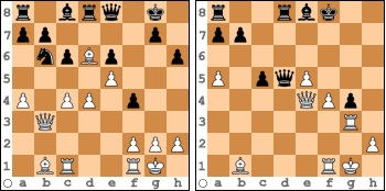 Das sollte eigentlich auch klappen, aber nichts ist schwerer, als eine gewonnene Partie zu gewinnen: Im rechten Diagramm hat Schwarz schon viel Gegenspiel und bald begnügte sich Günter Horny mit einem Remis, um nicht noch alles zu verderben.