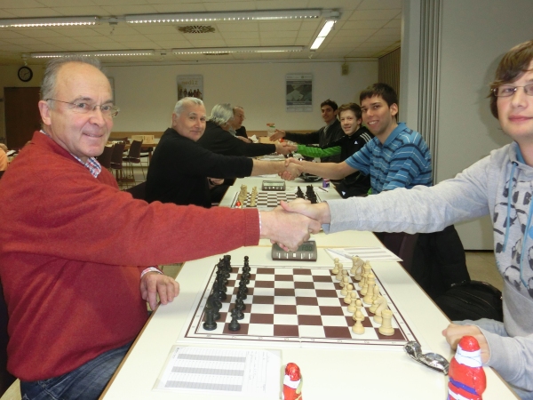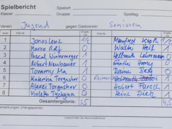 Jugendleiter Matthias Siegmann und Seniorenwart Heinz Dietz brachten jeweils 8 Vertreter ihrer Klientel an die Bretter und es war ein gut besetzter Mannschaftskampf. Alle zollten dem Match den gebührenden Ernst und dennoch fand er natürlich in freundschaftlicher Stimmung statt.