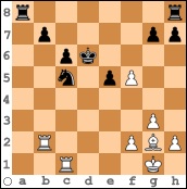 Aber wer so dachte, unterschätzte unseren Ulrich. Er setzte noch einmal alles auf Attacke und plötzlich sah sich Schwarz trotz Mehrfigur in die Defensive gedrängt. Mit nur noch 1 Minute Restbedenkzeit wusste sich Schwarz dann nicht mehr anders zu helfen als im letzten Diagramm mittels 1. ... Lg1+ 2. Kg3 Lf2+ 3. Kh2 das Remis mittels Dauerschach zu forcieren. Der Computer sieht Schwarz zwar deutlich im Vorteil, aber am Brett nach fast 4 Stunden Spielzeit kann der Freibauer auf c6 schon wirklich respekteinflössend wirken. Insofern kann man Ulrich hier durchaus das Glück des Tüchtigen bescheinigen und die Mannschaft freute sich nach dieser spannenden 1. Runde im diesjährigen 4er-Pokal eine Runde weiter zu sein.
