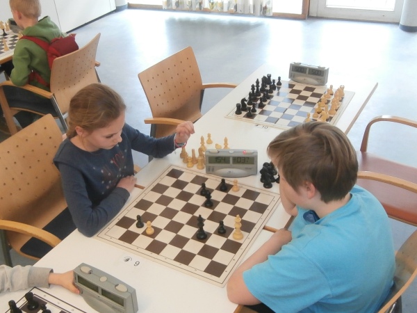 Und sie kann das auch: Fenja gewinnt in der ersten Blitzrunde gegen ein DWZ-Schwergewicht.