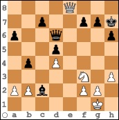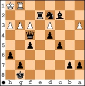 Jelena machte ihrer Gegnerin von Anfang an das Leben so schwer wie möglich und spielte gewohnt aggressiv. Da sie auf wenig Gegenwehr stieß konnte sie Figur für Figur einsammeln und fand in der Diagrammstellung auch souverän das zweizügige Mattbild 37. … Dxf3+ nebst Dxg2#.