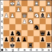 Und schließlich ist hier ist die schwarze Stellung bereits sehr schwierig, aber 1. ... Sd7? ist der entscheidende Fehler, da nach 2. Sd5 Material verloren geht.