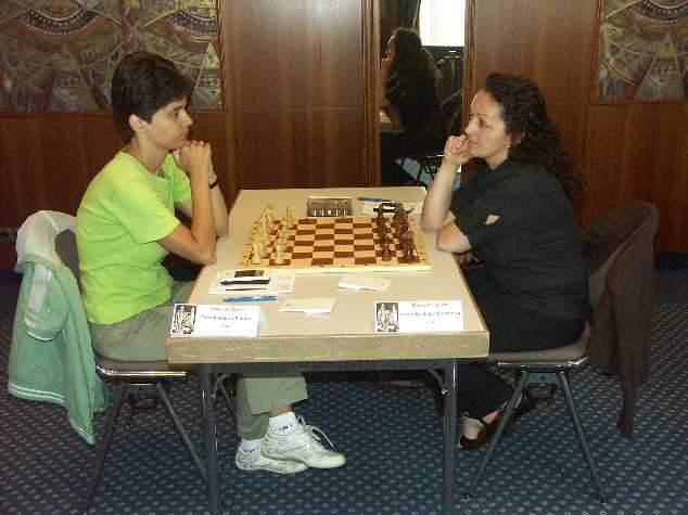 Anders Ketino Kachiani Gersinska, die ebenfalls mit Schwarz gegen Corina Peptan (Rumänien) antrat. Sie zeigte rasch ihre strategische Überlegenheit und belagerte auf sehenswerte Weise den Isolani auf d4. Zunächst war dieser zwar noch unter Eingeständnis von weiteren Schwächen zu verteidigen, aber schließlich fiel er doch.