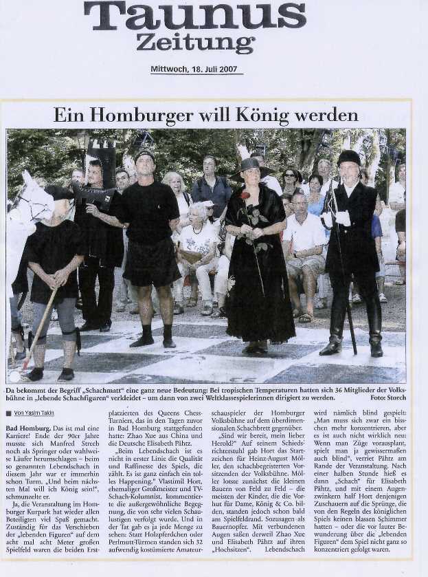 Zeitungsbericht in der Taunuszeitung vom 18.07.07