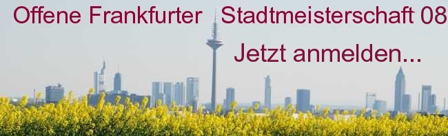 Unter der professionellen Organisation und Turnierleitung von Hans-Dieter Post findet ab 28. April für 7 Wochen immer montags die Offene Frankfurter Stadtmeisterschaft statt.