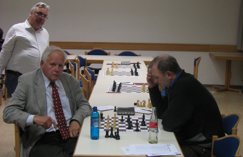 Die letzte Partie des Tages: Sieg für Paul Lenhart (rechts) gegen Helmut Desor, nachdem dieser mit seinem Läuferpaar harten