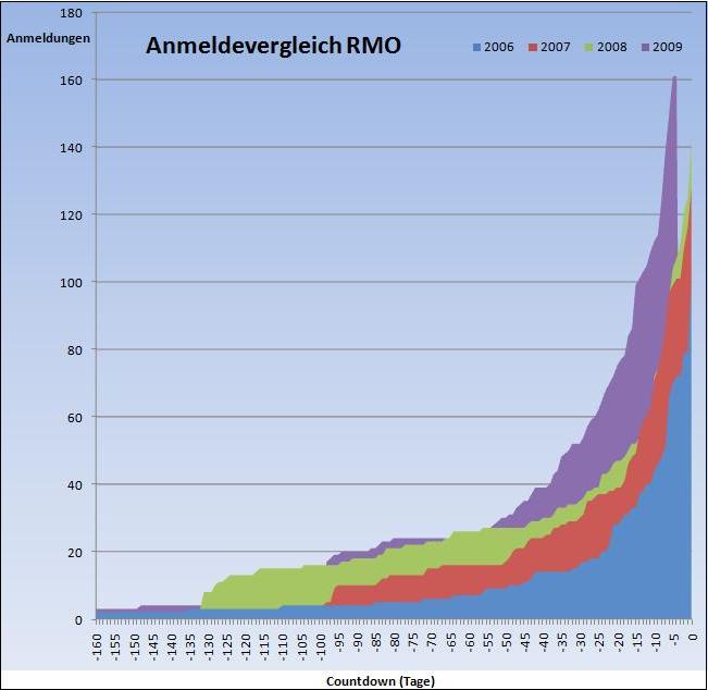 Entwicklung der Anmeldezahlen: 2009 hat mit Abstand die steilste Anmeldekurve