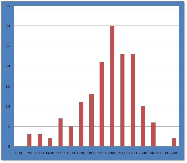 Anzahl der Teilnehmer abhängig von der Turnierwertungszahl (= Maximum DWZ und ELO)