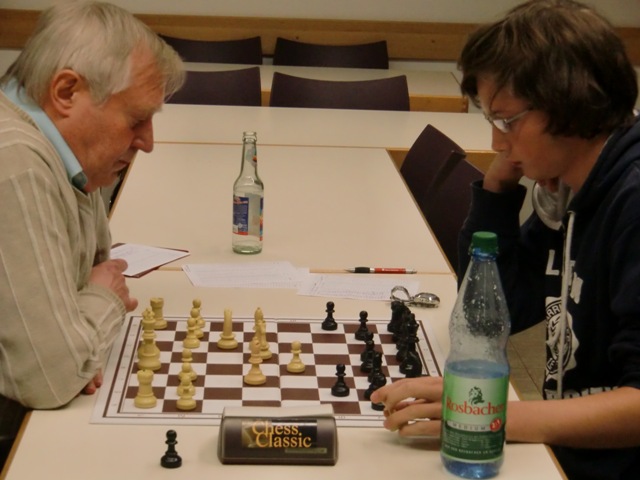 Die nächste Sensation bahnte sich an - aber Matthias muss offenbar noch an seiner Technik feilen: Erst ging ein Bauer über die Wupper, dann wurde das verbleibende Turmendspiel schwierig, dann sehr schwierig und am Ende erreichte Manfred Kroth doch noch das Remis nach über 50 Zügen.