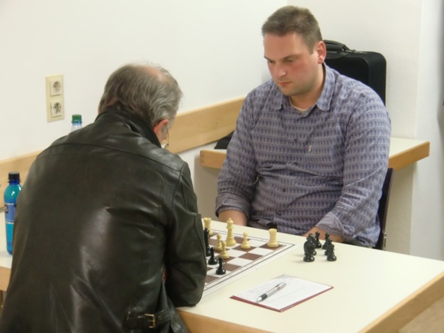 Matthias Siegmann hat sich gerade eine Gewinnstellung erarbeitet, erreichte am Ende aber nur ein nach dem Verlauf enttäuschendes Remis gegen den favorisierten Manfred Kroth
