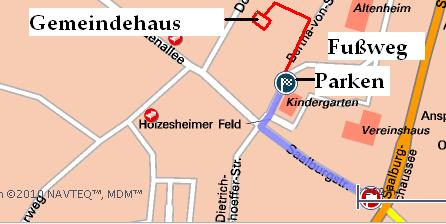 Wie auf der Grafik angedeutet, erfolgt die Anfahrt am besten über die Ricarda-Huch-Strasse, da dies keine Einbahnstraße ist und sich bessere Parkmöglichkeiten ergeben.