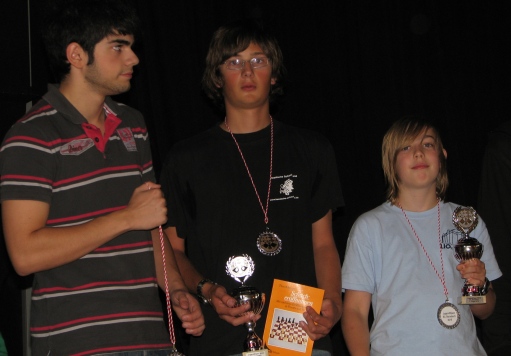 Siegerehrung für Jonas Lenz (mitte). Leider etwas dunkel - so dass Jonas Freude nicht ganz rüberkommt.