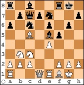 Schwarz hatte im linken Diagramm gerade mit 12. ... Le5 einen aktiven Zug gespielt, wurde aber von 13. Sd5! auf dem kalten Fuß erwischt. Weiß kümmert sich nicht um den einstehenden Bauern, sondern öffnet die Stellung mit einem Figurenopfer. Nach 13. ... exd5 14. exd5 d6 15. La3 (zweites Diagramm) verlor Schwarz die Übersicht und dann doch die Figur: 15. ... Sd8? 16. Txe5! mit Gewinnstellung für Weiß! |