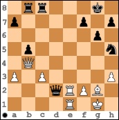 "This time it seems I was lucky!" - so Adrian noch mitten in der Nacht. Und es stimmt: Im Diagramm hatte sein hoch favorisierter Gegner leichte Vorteile, als er bei aufkommender Zeitnot mit 36. ... Dxc3?? 37. Te8+! Kg7 38. Dxc3 Txc3 39. Txb8 einen Turm verlor.